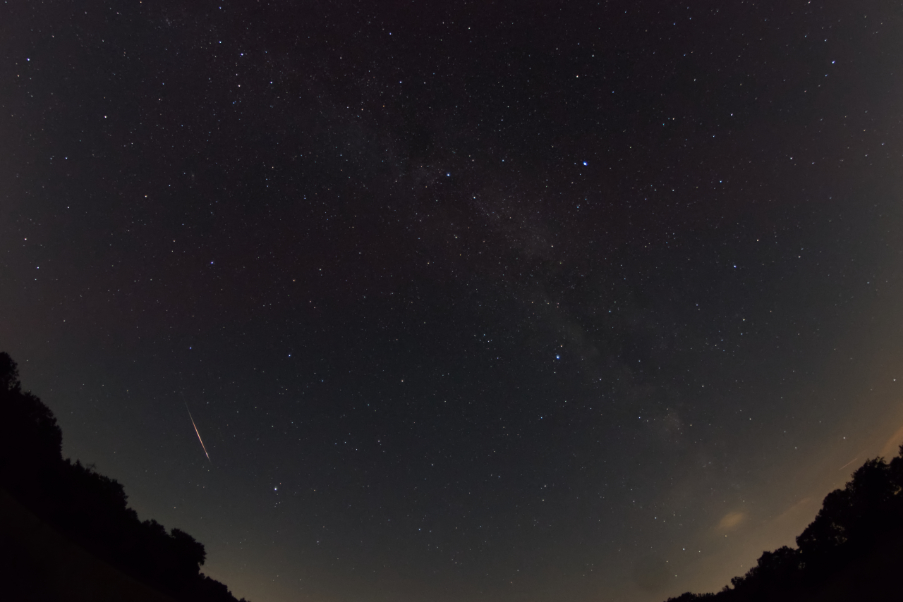 Aufgenommen mit Samyang 8mm Fisheye an Pentax K3II. Mit etwas Glück hat sich hier ein helles Meteor verewigt.