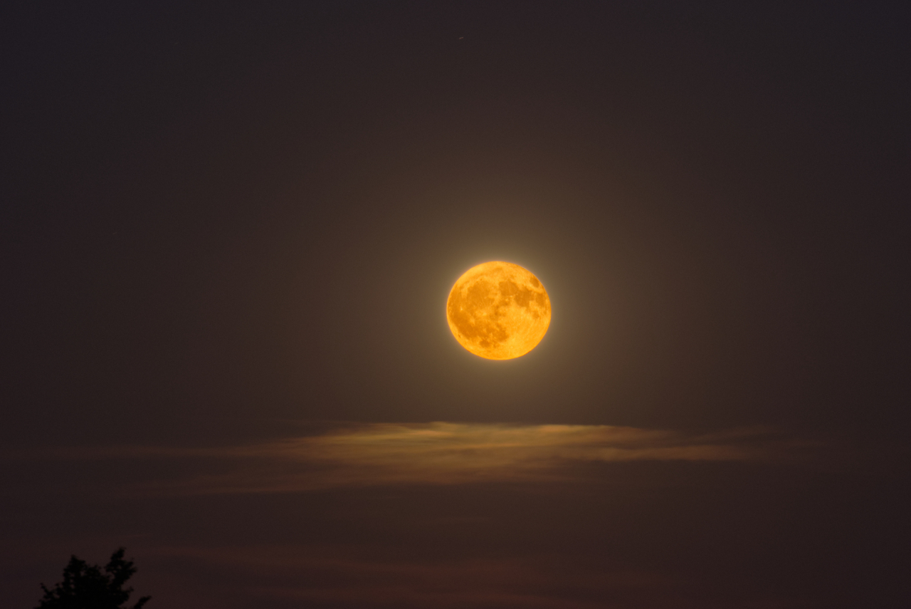 Der aufgehende Junivollmond 2025, aufgenommen mit 300mm Teleobjektiv